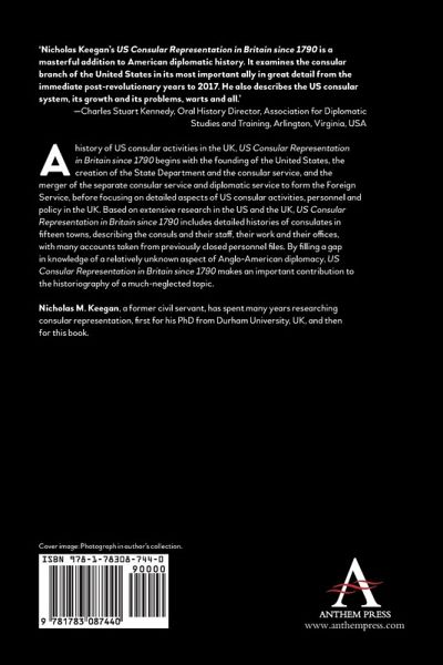 'US consular representation in Britain since 1790' is a history of US consular activities in the UK, which began in 1790 and continue to the present with consulates general in Edinburgh and Belfast. It also contains many previously unpublished illustrations.
