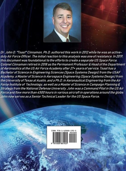 This prescient essay, originally published as a master's thesis in 2012, makes the case for establishing a U.S. national Space Force. As the author explains in the Abstract: In 2008, the Independent Assessment Panel on the Organization and Management of National Security Space (NSS) reported to Congress that the military and intelligence space programs are fragmented, disorganized, inefficient, and ineffective. Without strong leadership and a unifying vision, the United State (US) space enterprise is losing its advantage over competing nations. The nation must address this erosion of capability with vigor in the near term. Inaction threatens US national interests. The US should create a separate military Department of the Space Force. This work begins with a summary of the current strategic space environment, examines the fragmented state of the existing space enterprise, and establishes a framework for evaluating NSS. Having established the current NSS environment, it examines the genesis of the US Air Force (USAF). Air and airpower possess a set of specific characteristics that justify a distinct military service. This work then evaluates space and spacepower using the same series of attributes that validate a separate Air Force. Based on these attributes, the unique characteristics of space and space forces require the creation of a new Space Force. This work offers an organizational evolution for the current US space enterprise to address the significant issues that threaten the nation's ability to achieve national objectives. This necessary evolution is a Department of the Space Force. This reproduction is printed with full color interior and a handsome, durable case laminate matte exterior. An essential reference document for those interested in the once-in-generations creation of a new branch of the armed services.