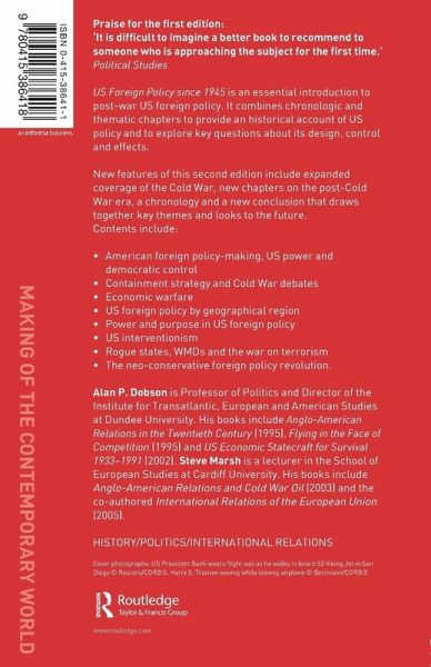 US Foreign Policy since 1945 is an essential introduction to postwar US foreign policy. It combines chronologic and thematic chapters to provide an historical account of US policy and to explore key questions about its design, control and effects. New features of this second edition include: expanded coverage of the Cold War new chapters on the post-Cold War era a chronology and a new conclusion that draws together key themes and looks to the future. Covering topics from American foreign policy-making, US power and democratic control, through to Cold War debates, economic warfare, WMDs and the war on terrorism, US Foreign Policy since 1945 is the ideal introduction to the topic for students of politics and international relations.