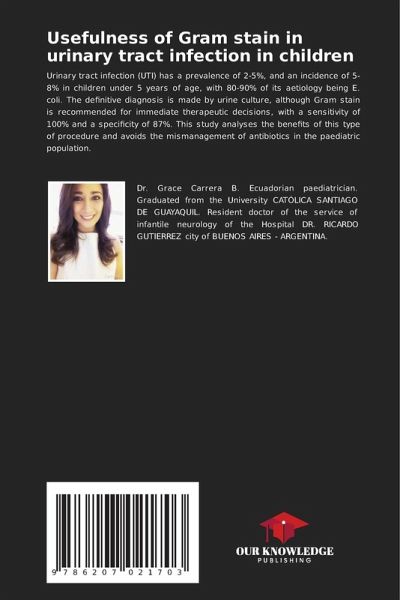 Urinary tract infection (UTI) has a prevalence of 2-5%, and an incidence of 5-8% in children under 5 years of age, with 80-90% of its aetiology being E. coli. The definitive diagnosis is made by urine culture, although Gram stain is recommended for immediate therapeutic decisions, with a sensitivity of 100% and a specificity of 87%. This study analyses the benefits of this type of procedure and avoids the mismanagement of antibiotics in the paediatric population.
