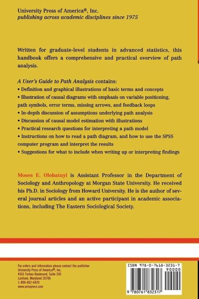 Written for graduate level students in advanced statistics, this handbook offers a comprehensive and practical overview of path analysis complete with: definition and graphical illustrations of basic terms and concepts; illustration of causal diagrams; in-depth discussion of assumptions underlying path analysis; discussion and illustration of causal model estimation; practical research questions for interpreting a path model; and instructions on how to read a path diagram and use the SPSS computer program.