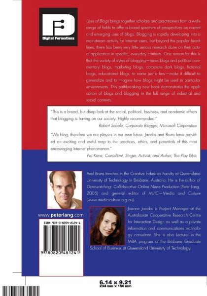 «We blog, therefore we are players in our own future. Jacobs and Bruns have provided an exciting and useful map to the practices, ethics, and potentials of this most encouraging Internet phenomenon. Highly recommended.» (Pat Kane, Consultant, Singer, Activist, and Author, 'The Play Ethic')