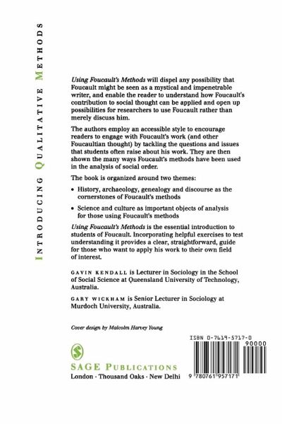 The book is organized around the following themes: history, archaeology, genealogy and discourse as the cornerstones of Foucault's methods; and science and culture as important objects of analysis for those using Foucault's methods. The book enables the reader to understand how Foucault's contribution to social thought can be applied and opens up possibilities for researchers to use Foucault rather than merely discuss him.