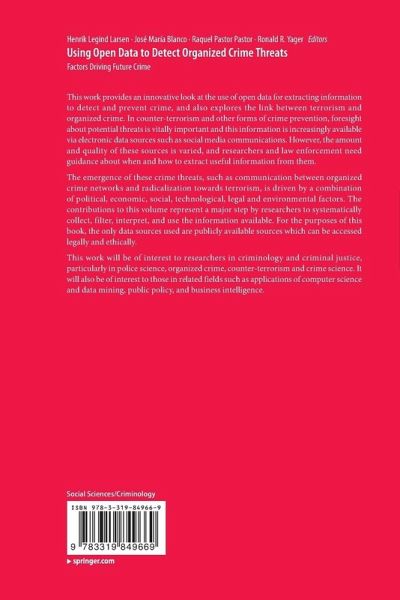 This work provides an innovative look at the use of open data for extracting information to detect and prevent crime, and also explores the link between terrorism and organized crime. In counter-terrorism and other forms of crime prevention, foresight about potential threats is vitally important and this information is increasingly available via electronic data sources such as social media communications. However, the amount and quality of these sources is varied, and researchers and law enforcement need guidance about when and how to extract useful information from them. The emergence of these crime threats, such as communication between organized crime networks and radicalization towards terrorism, is driven by a combination of political, economic, social, technological, legal and environmental factors. The contributions to this volume represent a major step by researchers to systematically collect, filter, interpret, and use the information available. For the purposes of this book, the only data sources used are publicly available sources which can be accessed legally and ethically.