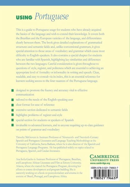 This guide to Portuguese usage covers the Brazilian and European varieties of Portuguese, and differentiates clearly between them. It pays special attention to those areas of vocabulary and grammar which cause most difficulty to English-speakers and also includes a special chapter for students familiar with Spanish, highlighting similarities and differences between the two languages. Consideration is given throughout to questions of style and register. The text is an essential reference for intermediate as well as more advanced students.