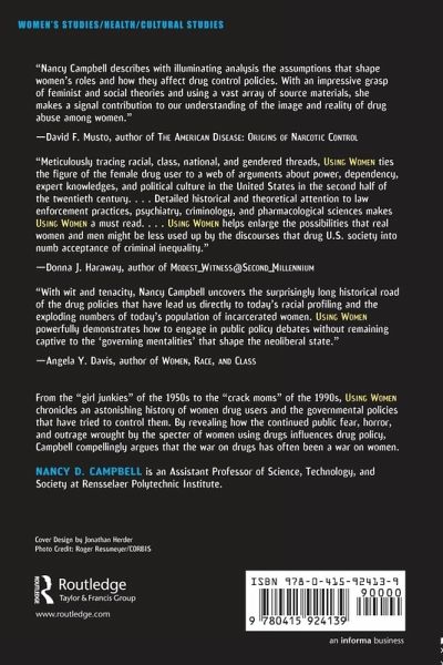 From the 1950s 'girl junkie' to the 1990s 'crack mom', Using Women investigates how the cultural representations of women drug users have defined America's drug policies in this century. In analyzing the public's continued fear, horror and outrage wrought by the specter of women using drugs, Nancy Campbell demonstrates the importance that public opinion and popular culture have played in regulating women's lives. The book will chronicle the history of women and drug use, provide a critical policy analysis of the government's drug policies and offer recommendations for the direction our current drug policies should take. Using Women includes such chapters as 'Sex, Drugs and Race in the Age of Dope'; 'Regulating Adolescents in the Postwar US'; 'Fifties Femininity'; and 'Regulating Maternal Instinct'.