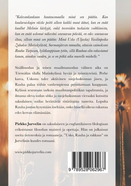 Sisällissodan ja toisen maailmansodan välinen aika on Törmälän tilalla Matinkylässä hyvää ja työntäyteistä. Perhe kasva, Uskosta tulee aktiivinen suojeluskunnan jäsen, ja Rauha palaa töihin vanhempiensa perustamaan kauppaan. Kylässä seurataan tarkoin maailmanpolitiikan tapahtumia, ja ilmassa oleva sodan uhka ja suojeluskunnan vieraaksi kutsuttu saksalainen sotilas herättävät ristiriitaisia tunteita. Lopulta Rauha joutuu kysymään itseltään, onko hänellä oikeus rakastaa edes kerran elämässään.