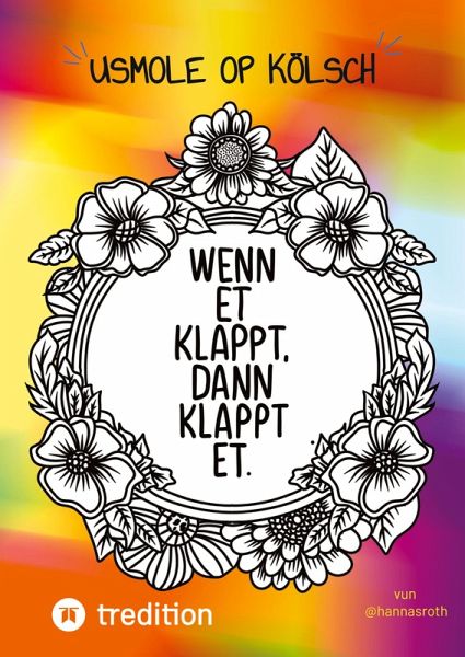 In diesem Malbuch werden kölsche Sprüche - von schönen Blumenkränzen umrahmt und zum Ausmalen dargeboten. Es enthält 15 Motive, die von Hand gezeichnet wurden und darauf warten, ausgemalt zu werden. Anschließend machen sich die farbenfrohen Kunstwerke auch wunderbar in einem Rahmen an der Wand.Für die richtige Schreibweise der kölschen Sprüche wird keine Garantie übernommen - alles wurde nach bestem Wissen und Gewissen gestaltet.