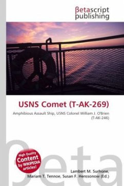 High Quality Content by WIKIPEDIA articles! The USNS Comet (T-AK-269) is a vehicle landing ship built for the United States Navy. The lone ship of her class, she is named for the comet (a luminous astronomical body, commonly with a long nebulous tail, and following a fixed orbit around the sun), and is the fourth U.S. Naval vessel to bear the name. Comet was laid down 31 July 1957 under Maritime Administration contract (MA hull 42) at Sun Shipbuilding and Dry Dock Company of Chester, Pennsylvania; launched 31 July 1957; delivered to the Navy 27 January 1958; and placed in service under control of the Military Sealift Command (MSC) as cargo ship USNS Comet (T-AK-269). Redesignated vehicle landing ship T-LSV-7 on 1 January 1963; further redesignated vehicle cargo ship / roll-on/roll-off ship AKR-7 (date unknown). Transferred to MARAD, laid up in the National Defense Reserve Fleet, Suisun Bay, Benecia, California as a member of the MARAD Ready Reserve Force (RRF). Removed from MSC control, withdrawn from the RRF by reassignment to the National Defense Reserve Fleet 28 July 2006.