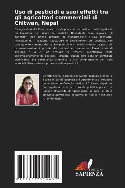Gli agricoltori dei Paesi in via di sviluppo sono esposti ai rischi legati alla manipolazione non sicura dei pesticidi. Nonostante l'uso regolare, gli agricoltori non hanno pratiche di manipolazione sicura (acquisto, miscelazione, irrorazione, stoccaggio e smaltimento) dei pesticidi, con conseguente aumento del rischio potenziale di avvelenamento da pesticidi. La manipolazione impropria dei pesticidi è comune nei Paesi in via di sviluppo e vi è una scarsità di ricerche sull'effettiva entità dell'avvelenamento da pesticidi. Pertanto, questo libro darà un contributo significativo alla conoscenza scientifica e alla comprensione dei rischi associati all'esposizione professionale ai pesticidi.