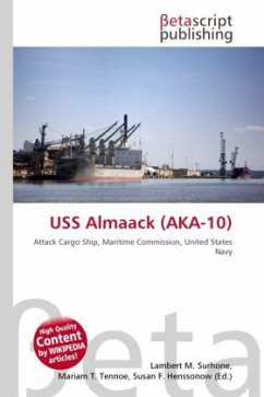 High Quality Content by WIKIPEDIA articles! USS Almaack (AKA-10) was an Almaack class attack cargo ship named after Almaack, a star system in the constellation Andromeda. She served as a commissioned ship for 4 years and 11 months. Laid down as the merchant ship Executor on 14 March 1940, under a Maritime Commission contract (MC hull 104), at Quincy, Massachusetts, by the Fore River yard of Bethlehem Steel Co.; launched on 21 September 1940; sponsored by Mrs. A.R. Winnett; and delivered to her owners, the American Export Lines, on 22 October 1940. Executor made two voyages to India before being acquired by the Navy on 3 June 1941 for conversion to a cargo ship. Renamed Almaack and classified as AK-27. Converted at the Tietjen and Lang Dry Dock Co., Hoboken, N.J., Almaack was commissioned at the Army Transport Service Base, Brooklyn, on 15 June 1941, Comdr. Thomas R. Cooley in command.