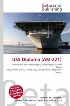 High Quality Content by WIKIPEDIA articles! USS Diploma (AM-221) was an Admirable-class minesweeper built for the United States Navy during World War II. She was awarded three battle stars for service in the Pacific during World War II. She was decommissioned in September 1946 and placed in reserve. While she remained in reserve, Diploma was reclassified as MSF-221 in February 1955 but never reactivated. In 1962, she was sold to the Mexican Navy and renamed ARM DM-17. In 1994 she was renamed ARM Cadete Francisco Márquez (C59). She was stricken in 2000, but her ultimate fate is not reported in secondary sources.