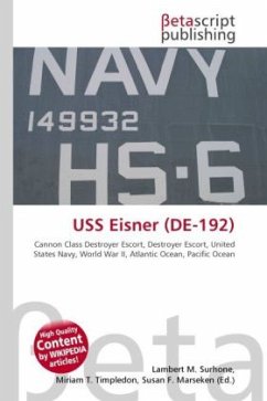 High Quality Content by WIKIPEDIA articles! USS Eisner (DE-192) was a Cannon-class destroyer escort built for the United States Navy during World War II. She served in the Atlantic Ocean and the Pacific Ocean and provided escort service against submarine and air attack for Navy vessels and convoys. Eisner was named in honor of Jacques Rodney Eisner who was killed in action during the Battle of Guadalcanal on 13 November 1942 while serving in USS San Francisco. The ship was launched on 12 December 1943 by Federal Shipbuilding and Dry Dock Co., Kearny, New Jersey; sponsored by Mrs. Lester Eisner, Jr., sister-in-law of Lieutenant (junior grade) Eisner; and commissioned on 1 January 1944, Lieutenant Commander D. McVickar, USNR, in command.