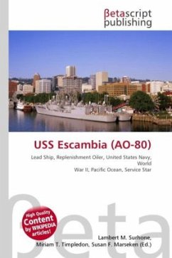 High Quality Content by WIKIPEDIA articles! USS Escambia (AO-80) was the lead ship of her class of fleet oilers acquired by the United States Navy for use during World War II. She had the dangerous, but necessary task of providing fuel to vessels in combat and non-combat areas primarily in the Pacific Ocean. For her valiant efforts, she received five battle stars during the war. Escambia, a type T2-SE-A2 hull, was launched on 25 April 1943 by Marinship Corp., Sausalito, California, sponsored by Mrs. Joseph Cooper, and commissioned on 28 October 1943, Lieutenant Commander J. M. Paulsson, USNR, in command.