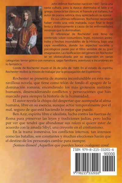 Rochester se presenta de manera inconfundible en esta novela, que tiene como telón de fondo el apogeo de la dominación romana, encendiendo los más grotescos instintos humanos, desencadenando conflictos y persecuciones que han marcado para siempre la historia de la humanidad. El autor revela la chispa del despertar que acompaña al alma humana, libre en su esencia, aunque actúe temporalmente por el mal, seguro de que está haciendo lo mejor que puede. Ben Azir, espíritu libre e idealista, lucha contra las fuerzas de Roma para preservar las leyes y tradiciones judías, pero lucha por ver que tendrá que abandonar sus raíces si quiere estar de acuerdo con la amada Sibyl, una creyente en el cristianismo. En la trama inmersiva, los conflictos internos, tan intensos como las batallas, son constantes y muchas elecciones harán que el destino de los personajes cambie para siempre. ¡Somos dioses! ¡Aquellos que pueden hacer cualquier cosa!
