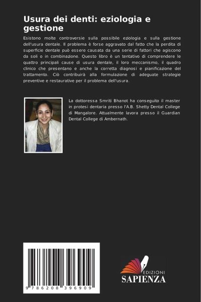 Esistono molte controversie sulla possibile eziologia e sulla gestione dell'usura dentale. Il problema è forse aggravato dal fatto che la perdita di superficie dentale può essere causata da una serie di fattori che agiscono da soli o in combinazione. Questo libro è un tentativo di comprendere le quattro principali cause di usura dentale, il loro meccanismo, il quadro clinico che presentano e anche la corretta diagnosi e pianificazione del trattamento. Ciò contribuirà alla formulazione di adeguate strategie preventive e restaurative per il problema dell'usura.