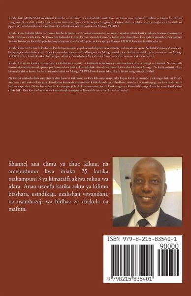 Kitabu hiki MNNNMA ni kiberiti kinacho washa moto wa mabadaliko makubwa, na kama siyo mapinduzi ndani ya kanisa lote linalo zungumza Kiswahili. Katika hiki tunaona mtizamo mpya wa theolojia, changamoto katika tafsiri za biblia ndani ya lugha ya Kiswahili, na jipya zaidi ni uhamisho wa waumini toka udini kuelekea mahusiano na Mungu YHWH. Kitabu kinachukulia biblia yote kuwa fumbo la picha, na hivyo kutumia mstari wa wakati uendao mbele katika mduara, kuonyesha mwanzo hadi mwisho wa kila kitu. Na kama hili halitoshi, kinaweka dai tatanishi kwamba, biblia yote iliandikwa kwa ajili ya ukombozi wa Adonai Yeshua Kristo, na kwamba yote humo pamoja na maisha yako yote, ni kwa ajili ya Mungu YHWH kuwa na familia yake tu. Kitabu kinacho dai tete la kuifunua kweli iliyo moja na ya pekee mahali pote, wakati wote, na kwa vizazi vyote. Na katika kunogesha uelewa; kinapinga mafundisho yaliyo zoeleka kwamba, mtu ataishi Mbinguni na Mungu milele, kwa kudai maandiko yote yanasema, ni Mungu YHWH anaye hamia katika Dunia mpya ndani ya Yerushalem Mpya kuishi humo milele na watoto wake watakatifu. Kitabu kinajikita katika malumbano ya kidini na sayansi, na kuitumia teknolojia ya sasa kuelezea dhana nyingi za kiimani. Na kwa kila funzo la kinadharia unalo pewa, pia huonyeshwa jinsi ya kutenda hilo uhesabiwe mstahiki wa ahadi hiyo ya Mungu. Na katika ujasiri mkuu kinaweka dai ya kuwa, hicho ni ujumbe halisi wa Mungu YHWH kwa kanisa lake tukufu linalo zungumza Kiswahili. Ni kitabu ambacho kila anayefunza dini hawezi kukikosa, na kwa kila mtu anaye taka kujua kweli ya mambo ya kiungu, hiki ni kitabu muhimu zaidi sokoni kwa sasa. Tunakiona kutawala malumbano katika kumbi za mihadhara, mimbari za masinagogi, na hata madarasani kufunzwapo dini. Ni kitabu ambacho kitafungua jicho la kila muumini, kwani katika lugha ya Kiswahili hakipo kinacho zama katika kina chake hiki. Kwa kweli uhamsho wa kanisa linalo zungumza Kiswahili sasa umefika wakati wake!