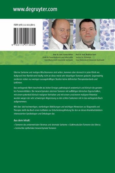 Die seltenen uterinen Sarkome und malignen Mischtumoren sind häufig ein Zufallsbefund. Neben nur wenigen aussagekräftigen Studien existieren keine definierten Therapiestandards und Leitlinien. Wegen der schwierigen Abgrenzung zu den Sarkomen und malignen Mischtumoren wurden auch die mesenchymalen Tumoren mit auffälligen klinischen Eigenschaften, einem potentiell klinisch malignen Verhalten und einem unsicherem malignen Potential aber auch gutartige Mischtumoren in die Publikation aufgenommen. Für jede Entität erfolgt eine detaillierte Besprechung zur Epidemiologie, Ätiologie und Pathogenese. Besonderer Wert wird auf die makro- und mikroskopische Charakterisierung, die Prognose sowie die Diagnostik und Differenzialdiagnose mit ihren Fallstricken und Fehlerquellen gelegt. Die klar formulierten Therapieempfehlungen behandeln jeweils auf den Uterus begrenzte, fortgeschrittene, rezidivierte und metastasierte Tumoren. Die Möglichkeiten der Operation, der Bestrahlung, der neoadjuvanten, adjuvanten sowie palliativen Hormon- und Chemotherapie und Empfehlungen zur Nachsorge werden umfassend und kritisch dargestellt. Trotz der vergleichsweise ausführlichen pathologisch-anatomischen Beschreibung, soll dieses Buch mit über 200 hochwertigen, vierfarbigen Abbildungen und einem umfassenden aktuellen Literaturverzeichnis dennoch ein Leitfaden zur Entscheidungsfindung für den klinisch und ambulant tätigen Gynäkologen und Onkologen zu sein. Für die aufgeführten Tumorgruppen existiert gegenwärtig keine weitere zusammenfassende Monographie.
