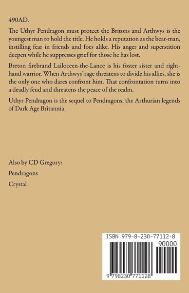 490AD. The Uthyr Pendragon must protect the Britons and Arthwys is the youngest man to hold the title. He holds a fearsome reputation as the bear-man, instilling fear in friends and foes alike. His anger and superstition deepen while he suppresses grief for those he has lost. Breton firebrand Lailoceen-the-Lance is his foster sister and right-hand warrior. When Arthwys' rage threatens to divide his allies, she is the only one who dares confront him. That confrontation turns into a deadly feud and threatens the peace of the realm. Uthyr Pendragon is the sequel to Pendragons, the Arthurian legends of Dark Age Britannia.