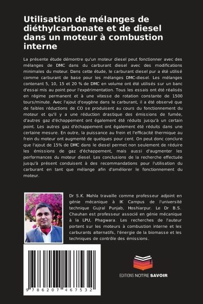 La présente étude démontre qu'un moteur diesel peut fonctionner avec des mélanges de DMC dans du carburant diesel avec des modifications minimales du moteur. Dans cette étude, le carburant diesel pur a été utilisé comme carburant de base pour les mélanges DMC-diesel. Les mélanges contenant 5, 10, 15 et 20 % de DMC en volume ont été utilisés sur un banc d'essai mis au point pour l'expérimentation. Tous les essais ont été réalisés en régime permanent et à une vitesse de rotation constante de 1500 tours/minute. Avec l'ajout d'oxygène dans le carburant, il a été observé que de faibles réductions de CO se produisent au cours du fonctionnement du moteur et qu'il y a une réduction drastique des émissions de fumée, d'autres gaz d'échappement ont également été réduits jusqu'à un certain point. Les autres gaz d'échappement ont également été réduits dans une certaine mesure. En outre, la puissance au frein et l'efficacité thermique au frein du moteur ont augmenté de quelques pour cent. On peut donc conclure que l'ajout de 15% de DMC dans le diesel permet non seulement de réduire les émissions de gaz d'échappement, mais aussi d'augmenter les performances du moteur diesel. Les conclusions de la recherche effectuée jusqu'à présent conduisent à des recommandations pour l'utilisation du carburant en tant que mélange afin d'améliorer le fonctionnement du moteur.