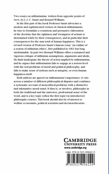 Two essays on utilitarianism, written from opposite points of view, by J. J. C. Smart and Bernard Williams. In the first part of the book Professor Smart advocates a modern and sophisticated version of classical utilitarianism. In Part II Bernard Williams offers a sustained and vigorous critique of utilitarian assumptions, arguments and ideals.