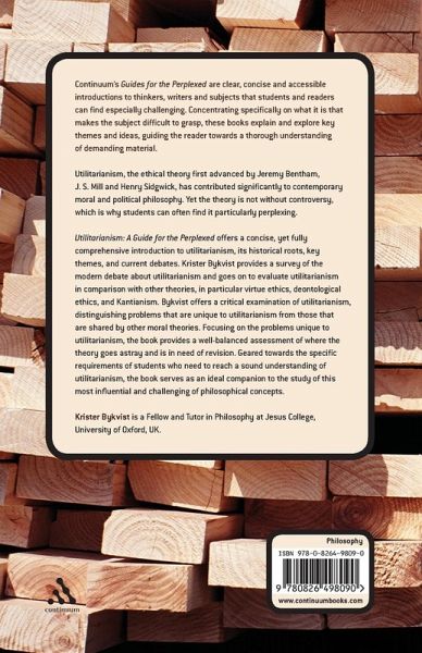 Utilitarianism is the ethical theory advanced by Jeremy Bentham, J.S. Mill, and Henry Sidgwick and has contributed significantly to contemporary moral and political philosophy. Yet it is not without controversy and is a subject that students can often find particularly perplexing. Utilitarianism: A Guide for the Perplexed offers a concise, yet fully comprehensive introduction to utilitarianism, its historical roots, key themes, and current debates. Krister Bykvist provides a survey of the modern debate about utilitarianism and goes on to evaluate utilitarianism in comparison with other theories, in particular virtue ethics and Kantianism. Bykvist offers a critical examination of utilitarianism, distinguishing problems that are unique to utilitarianism from those that are shared by other moral theories. Focusing on the problems unique to utilitarianism, the book provides a well-balanced assessment of where the theory goes astray and is in need of revision. Geared towards the specific requirements of students who need to reach a sound understanding of utilitarianism, this book serves as an ideal companion to study of this influential and challenging of philosophical concepts.