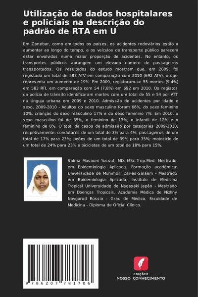 Em Zanzibar, como em todos os países, os acidentes rodoviários estão a aumentar ao longo do tempo, e os veículos de transporte público parecem estar envolvidos numa maior proporção de acidentes. No entanto, os transportes públicos abrangem um elevado número de passageiros transportados. Os resultados do estudo mostram que, em 2009, foi registado um total de 583 ATV em comparação com 2010 (692 ATV), o que representa um aumento de 19%. Em 2009, registaram-se 55 mortes (9,4%) em 583 RTI, em comparação com 54 (7,8%) em 692 em 2010. Os registos da polícia de trânsito identificaram mortes com um total de 55 e 54 por ATT na Unguja urbana em 2009 e 2010. Admissão de acidentes por idade e sexo, 2009-2010 - Adultos do sexo masculino foram 66%, do sexo feminino 10%, crianças do sexo masculino 17% e do sexo feminino 7%. Em 2010, o sexo masculino foi de 65%, o feminino de 13%, o infantil de 12% e o feminino de 8%. O total de casos de admissão por categorias 2009-2010, respetivamente: condutores de um total de 3% para 4%; passageiros de um total de 17% para 23%; peões de um total de 39% para 35%; motociclo de um total de 24% para 23% e bicicletas de um total de 18% para 15%.