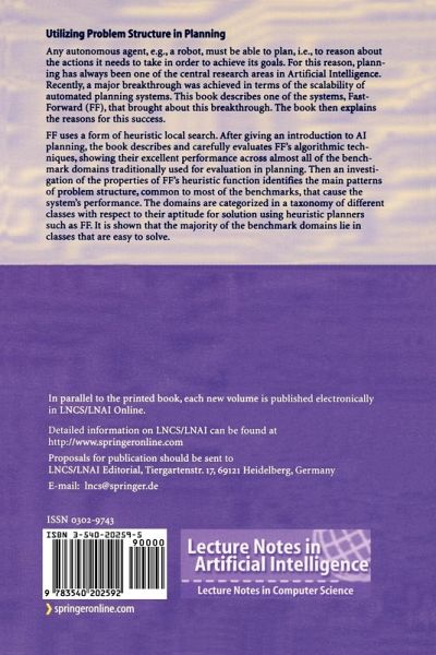 After giving a general introduction to AI planning, the book describes and carefully evaluates the algorithmic techniques used in fast-forward planning systems (FF), demonstrating their excellent performance in many wellknown benchmark domains. In advance, an original and detailed investigation identifies the main patterns of structure which cause the performance of FF, categorizing planning domains in a taxonomy of different classes with respect to their aptitude for being solved by heuristic approaches, such as FF. As shown, the majority of the planning benchmark domains lie in classes which are easy to solve.