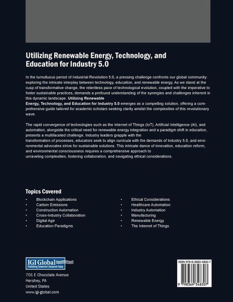In the tumultuous period of Industrial Revolution 5.0, a pressing challenge confronts our global community: exploring the intricate interplay between technology, education, and renewable energy. As we stand at the cusp of transformative change, the relentless pace of technological evolution, coupled with the imperative to foster sustainable practices, demands a profound understanding of the synergies and challenges inherent in this dynamic landscape. Utilizing Renewable Energy, Technology, and Education for Industry 5.0 emerges as a compelling solution, offering a comprehensive guide tailored for academic scholars seeking clarity amidst the complexities of this revolutionary wave. The rapid convergence of technologies such as the Internet of Things (IoT), Artificial Intelligence (AI), and automation, alongside the critical need for renewable energy integration and a paradigm shift in education, presents a multifaceted challenge. Industry leaders grapple with the transformation of processes, educators seek to align curricula with the demands of Industry 5.0, and environmental advocates strive for sustainable solutions. This intricate dance of innovation, education reform, and environmental consciousness requires a comprehensive approach to unraveling complexities, fostering collaboration, and navigating ethical considerations.
