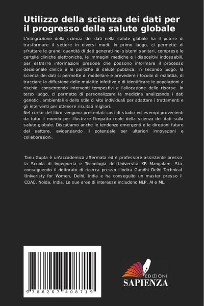 L'integrazione della scienza dei dati nella salute globale ha il potere di trasformare il settore in diversi modi. In primo luogo, ci permette di sfruttare le grandi quantità di dati generati nei sistemi sanitari, comprese le cartelle cliniche elettroniche, le immagini mediche e i dispositivi indossabili, per estrarre informazioni preziose che possono informare il processo decisionale clinico e le politiche di salute pubblica. In secondo luogo, la scienza dei dati ci permette di modellare e prevedere i focolai di malattia, di tracciare la diffusione delle malattie infettive e di identificare le popolazioni a rischio, consentendo interventi tempestivi e l'allocazione delle risorse. In terzo luogo, ci permette di personalizzare la medicina analizzando i dati genetici, ambientali e dello stile di vita individuali per adattare i trattamenti e gli interventi per ottenere risultati migliori.Nel corso del libro vengono presentati casi di studio ed esempi provenienti da tutto il mondo per illustrare l'impatto reale della scienza dei dati sulla salute globale. Discutiamo anche le tendenze emergenti e le direzioni future del settore, evidenziando il potenziale per ulteriori innovazioni e collaborazioni.