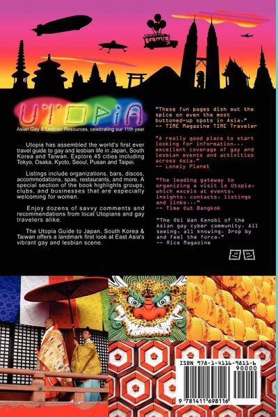 Utopia has assembled the world's first ever travel guide to gay and lesbian life in Japan, South Korea and Taiwan. Listings include organizations, bars, discos, accommodations, spas, restaurants, and more. A special section of the book highlights groups, clubs, and businesses that are especially welcoming for women. Enjoy dozens of savvy comments and recommendations from local Utopians and gay travelers alike. The Utopia Guide to Japan, South Korea & Taiwan offers a landmark first look at East Asia's vibrant gay and lesbian scene.