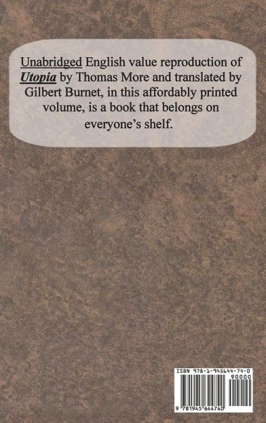 Unabridged English value reproduction of Utopia by Thomas More and translated by Gilbert Burnet, in this affordably printed volume, is a book that belongs on everyone’s shelf. Published originally in 1516, More made popular the common usage of the term Utopia, "as a communal place where everything is perfect." A lawyer himself, Utopia includes no lawyers due to the law’s simplicity. Reading More’s version gives insight into the original thought of what a Utopia should be. This Value Classic Reprint provides a slim volume with full text at an affordable price.