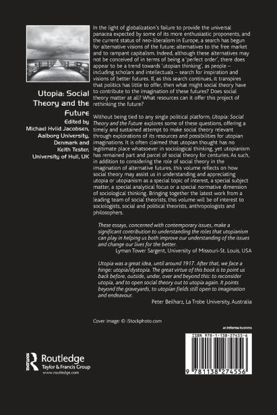 Contents: Introduction: utopia as a topic for social theory Michael Hviid Jacobsen and Keith Tester; Part I Theoretical Musings: Utopia and the end of history Henk de Berg; What is concrete about Ernst Bloch's 'concrete utopia'? Peter Thompson; Dreams visions and utopias - romantic and realist revolutionaries and the idyllic Arpad Szakolczai; Liquid modern 'utopia' - Zygmunt Bauman on the transformation of utopia Michael Hviid Jacobsen; Houellebecq's dystopia - a case of the elective affinity between sociology and literature Anders Petersen and Michael Hviid Jacobsen. Part II Theories in Motion: Utopia and criminology Peter Young; Utopianism dystopianism and ecological thought Kate Rigby; Social movement as utopian practice Andrew Jamison; Virtual utopias and dystopias - the cultural imaginary of the internet Majid Yar; Utopias of mobility Ole B. Jensen and Malene Freudendal-Pedersen; Index.