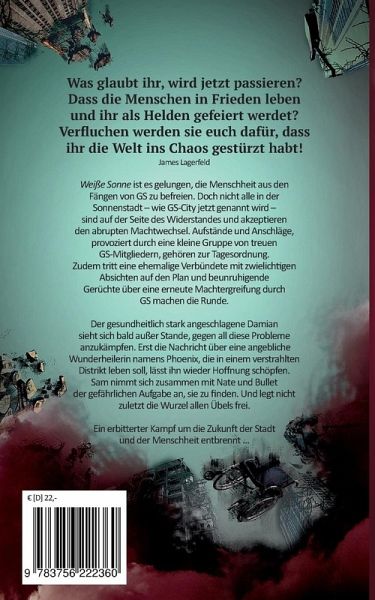 Der zweite Teil der Dystopie:Weiße Sonne ist es gelungen, die Menschheit aus den Fängen von GS zu befreien. Doch nicht alle in der Sonnenstadt - wie GS-City jetzt genannt wird - sind auf der Seite des Widerstandes und akzeptieren den abrupten Machtwechsel. Aufstände und Anschläge, provoziert durch eine kleine Gruppe von treuen GSK-Mitgliedern, gehören zur Tagesordnung. Zudem tritt eine ehemalige Verbündete mit zwielichtigen Absichten auf den Plan und beunruhigende Gerüchte über eine erneute Machtergreifung durch GS machen die Runde.Der gesundheitlich stark angeschlagene Damian sieht sich bald außer Stande, gegen all diese Probleme anzukämpfen. Erst die Nachricht über eine angebliche Wunderheilerin namens Phoenix, die in einem verstrahlten Distrikt leben soll, lässt ihn wieder Hoffnung schöpfen. Sam nimmt sich zusammen mit Nate und Bullet der gefährlichen Aufgabe an, sie zu finden. Und legt nicht zuletzt die Wurzel allen Übels frei. Ein erbitterter Kampf um die Zukunft der Stadt und der Menschheit entbrennt ...---Altersempfehlung: ab 16 Jahre
