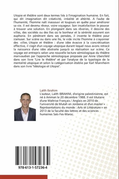 Utopie et théâtre sont deux termes liés à l'imagination humaine. En fait, qui dit imagination dit créativité, irréalité et altérité. A l'aube de l'humanité, l'homme naît inassouvi et toujours en quête pour améliorer sa vie. Il est devenu rêveur, voire voyageur. Son insatisfaction le pousse à trouver une solution. En plongeant dans ses rêveries, il dessine des villes, des sociétés ou des îles où le bonheur et la sérénité assurent son euphorie. En pénétrant dans ses pensées, il invente le théâtre pour s'amuser. Sur scène ou dans une île, le vide incite l'homme à crayonner des villes. Utopie et théâtre : d'une idée évasive à la concrétisation effective, il s'agit d'un voyage utopique durant lequel nous avons retracé la naissance d'une idée abstraite jusqu'à sa réalisation sur scène. Ce voyage est entrepris selon une nouvelle lecture sémiologique du théâtre marivaudien par l'approche sémiologique proposée par Anne Ubersfeld dans son livre "Lire le théâtre" et par l'analyse de la typologie de la mentalité utopique et selon la catégorisation établie par Karl Mannheim dans son livre "Idéologie et Utopie".