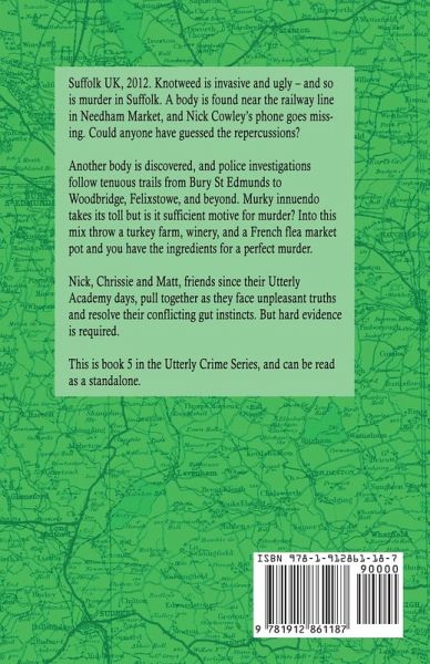 Suffolk UK, 2012. Knotweed is invasive and ugly - and so is murder in Suffolk. A body is found near the railway line in Needham Market, and Nick Cowley's phone goes missing. Could anyone have guessed the repercussions? Another body is discovered, and police investigations follow tenuous trails from Bury St Edmunds to Woodbridge, Felixstowe, and beyond. Murky innuendo takes its toll but is it sufficient motive for murder? Into this mix throw a turkey farm, winery, and a French flea market pot, and you have the ingredients for a perfect murder. Nick, Chrissie and Matt, friends since their Utterly Academy days, pull together as they face unpleasant truths and resolve their conflicting gut instincts. But hard evidence is required to catch a killer. This is book 5 in the Utterly Crime Series, and can be red as a standalone.