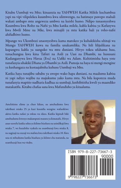 Kitabu Uumbaji wa Mtu; kinaanzia na YAHWEH Katika Milele kuchambua yapi na vipi vilipelekea kuumbwa kwa ulimwengu, na hatimaye pawepo mahali wakati ambapo mtu angeweza umbwa na kuishi humo. Ndipo tunaonyeshwa Kuumbwa kwa Roho na Nafsi ya Mtu katika milele, kabla kabisa ya Kufanywa kwa Mwili Mme na Mke, kwa minajili ya mtu katika hali ya roho-nafsi ahifadhiwe humo. Mpango wa Ukombozi unaonyeshwa kama matokeo ya kuhakikisha uhitaji wa Mungu YAHWEH kuwa na familia unakamilika. Na hili lilijulikana na kupangwa kabla ya uanguko wa mtu duniani. Hivyo tokea ufahamu huu, tunachungua kwa kina Tafsiri na Asili ya Uasi na Dhambi, na hususani Kudanganywa kwa Havaa (Eva) na Uafiki wa Adam. Kuhitimisha haya yote tunafanyia uhakiki Dhana ya Dhambi ya Asili. Pamoja na haya ni mengi mengine ya kushangaza na kustaajabisha kuhusu Uumbaji wa Mtu. Katika haya tunajibu sababu ya uwepo wako hapa duniani, na maalumu kabisa ni yapi ndiyo wajibu na majukumu yako kama mtu. Na bila kupoteza muda tunafanyia mapitio nadharia kadhaa za uumbaji, kuthibitisha kweli ya maandiko matakatifu. Kitabu chafaa sana kwa Mafundisho ya kitaaluma.