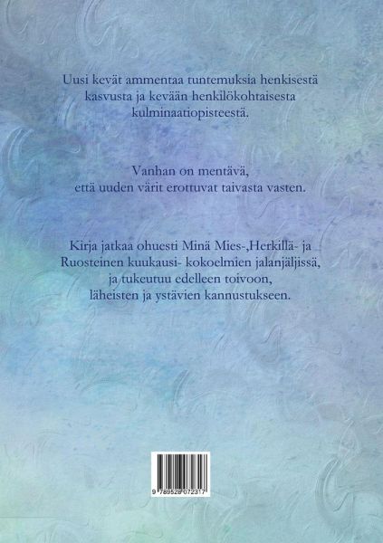 Uusi kevät ammentaa tuntemuksia henkisestä kasvusta ja kevään henkilökohtaisesta kulminaatiopisteestä. Vanhan on mentävä, että uuden värit erottuvat taivasta vasten. Kirja jatkaa ohuesti Herkillä- ja Ruosteinen kuukausi- kokoelmien jalanjäljissä, mutta tukeutuu enemmän toivoon ja läheisten ja ystävien kannustukseen.