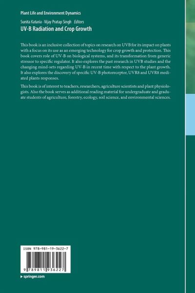 This book is an inclusive collection of topics on research on UVB for its impact on plants with a focus on its use as an emerging technology for crop growth and protection. This book covers role of UV-B on biological systems, and its transformation from generic stressor to specific regulator. It also explores the past research in UVB studies and the changing mind-sets regarding UV-B in recent time with respect to the plant growth. It also explores the discovery of specific UV-B photoreceptor, UVR8 and UVR8 mediated plants responses.
