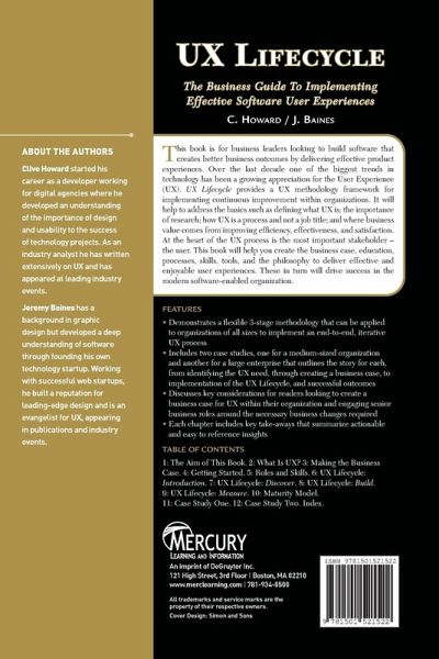 This book is for business leaders looking to build software that creates better business outcomes by delivering effective product experiences. Over the last decade one of the biggest trends in technology has been a growing appreciation for the User Experience (UX). UX Lifecycle provides a UX methodology framework for implementing continuous improvement within organizations. It will help to address the basics such as defining what UX is; the importance of research; how UX is a process and not a job title; and where business value comes from improving efficiency, effectiveness, and satisfaction. At the heart of the UX process is the most important stakeholder - the user. This book will help you create the business case, education, processes, skills, tools, and the philosophy to deliver effective and enjoyable user experiences. These in turn will drive success in the modern software-enabled organization.