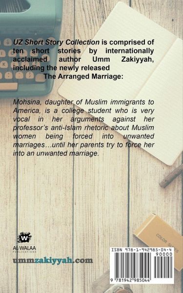 UZ Short Story Collection is comprised of ten short stories by internationally acclaimed author Umm Zakiyyah, including the newly released The Arranged Marriage: Mohsina, daughter of Muslim immigrants to America, is a college student who is very vocal in her arguments against her professor's anti-Islam rhetoric about Muslim women being forced into unwanted marriages...until her parents try to force her into an unwanted marriage.