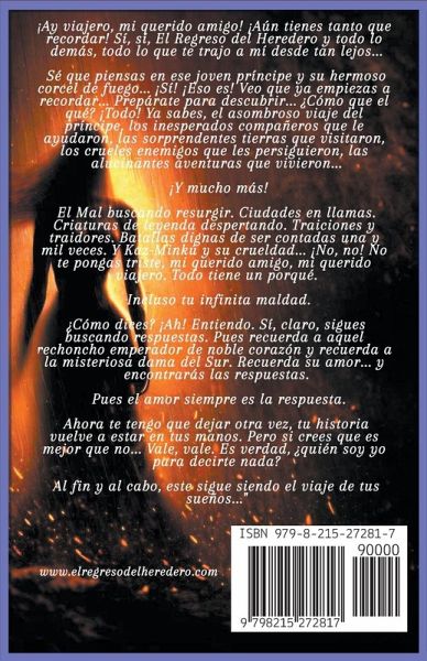 "¡Ay viajero, mi querido amigo! ¡Aún tienes tanto que recordar! Sí, sí, El Regreso del Heredero y todo lo demás, todo lo que te trajo a mí desde tan lejos... Sé que piensas en ese joven príncipe y su hermoso corcel de fuego... ¡Sí! ¡Eso es! Veo que ya empiezas a recordar... Prepárate para descubrir... ¿Cómo que el qué? ¡Todo! Ya sabes, el asombroso viaje del príncipe, los inesperados compañeros que le ayudaron, las sorprendentes tierras que visitaron, los crueles enemigos que les persiguieron, las alucinantes aventuras que vivieron...¡Y mucho más!El Mal buscando resurgir. Ciudades en llamas. Criaturas de leyenda despertando. Traiciones y traidores. Batallas dignas de ser contadas una y mil veces. Y Kaz-Minkú y su crueldad... ¡No, no! No te pongas triste, mi querido amigo, mi querido viajero. Todo tiene un porqué.Incluso tu infinita maldad.¿Cómo dices? ¡Ah! Entiendo. Sí, claro, sigues buscando respuestas. Pues recuerda a aquel rechoncho emperador de noble corazón y recuerda a la misteriosa dama del Sur. Recuerda su amor... y encontrarás las respuestas.Pues el amor siempre es la respuesta.Ahora te tengo que dejar otra vez, tu historia vuelve a estar en tus manos. Pero si crees que es mejor que no... Vale, vale. Es verdad, ¿quién soy yo para decirte nada?Al fin y al cabo, este sigue siendo el viaje de tus sueños..." ¿¿¿¿¿¿¿¿¿¿ En un mundo que no deberías haber olvidado las sombras de la guerra amenazan con alzarse de nuevo e imponer su cruel oscuridad por toda la eternidad. La devastación de la ciudad élfica de Snata-Úrom y la captura de su gran general tan solo ha sido el preludio de los crueles planes de los siervos del Amo de Kaz-Minkú. Sus restos bañados en sangre reseca inunda nuestro mundo vivo con un llanto amargo que todo lo pudre. Los aliados del Concilio deberán permanecer unidos si quieren recuperar la ayuda del emisario de los tiempos y sobrevivir al Mal del Norte... Por su parte, el joven príncipe Akar continuará con su peligroso viaje al Oeste, su luz indómita brillará con fuerza en esta tierra maldita y envuelta en cicatrices. Lejos de esa luz cegadora, el amor se enfrentará al desafío que siempre supone para todo aquel que padece su abrazo tanto la distancia como el miedo. Sí, tal vez aún quede algo valioso por lo que seguir luchando, tal vez quede algo de esperanza para todos nosotros antes de que inevitablemente la terrible noche nos atrape en su dolor agonizante para siempre.El día ya lo domina todo.El tiempo del heredero ha llegado.