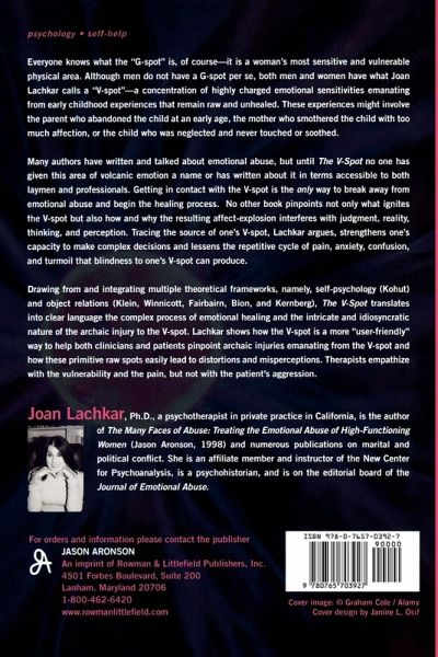 The 'V-Spot' is a term created to describe the most sensitive area of emotional vulnerability that becomes aroused when one partner hits an emotional raw spot in the other. The V Spot is designed to parallel the G-Spot, as the emotional counterpart that can be triggered by a seemingly unimportant event. The V-Spot is comprised of highly charged emotional sensitivities that emanate from raw experiences during infancy and childhood. Getting in contact with the V-Spot is the only way to break away from emotional abuse and begin the healing process. Through Lachkar's book, clinicians and therapists will become acquainted with the V-Spot and recognize the importance of this volatile area of emotional vulnerability.