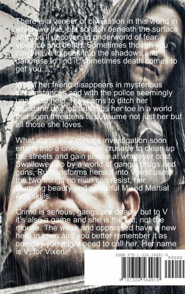 There is a veneer of civilisation in this world in which we live, but scratch beneath the surface & you'll uncover an underworld of fear, violence & death. Sometimes though you don't have to peek into the shadows & darkness to find it, sometimes death comes to get you. When her friend disappears in mysterious circumstances and with the police seemingly unable to help, Ru yearns to ditch her mundane day job and dips her toe in a world that soon threatens to subsume not just her but all those she loves. What starts as a curious investigation soon erupts into a one-woman crusade to clean up the streets & gain justice at whatever cost. Swallowed up by a world of gangs, drugs & guns, Ru transforms herself into V & uses the two things no man can resist, her stunning beauty and powerful Mixed Martial Arts skills. The weak and oppressed have a new hero in town,you better remember it as one day you might need to call her. Her name is V, for Vixen. Vixen is a Vigilante Pulp Noir Action Thriller.