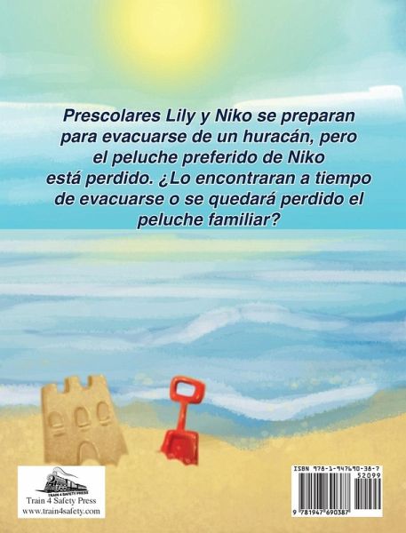 Mom's Choice Award Winner The Spanish Language Edition of Hurricane Vacation Prescolares Lily y Niko descubren repentinamente cómo lidiar con lo inesperado cuando sus vacaciones cambian de natación y castillos de arena al prepararse para un huracán. Pero al prepararse para evacuar con su prima Emma y su familia, el peluche preferido de Niko se pierde. ¿Lo encontraran a tiempo de evacuarse o se quedará perdido el peluche familiar? Leyendo este libro es una buena manera para padres, proveedores de cuidado infantil, y otros cuidadores familiares para qué hablen con niños pequeños y niños prescolares sobre cómo prepararse para un huracán y para una evacuación de una manera no miedosa. Puede escuchar la canción, descargar un póster gratuito y un certificado de capacitación en seguridad contra terremotos en train4safety (punto) com. Simplemente seleccione el botón Ready Tots and Resources en el menú.