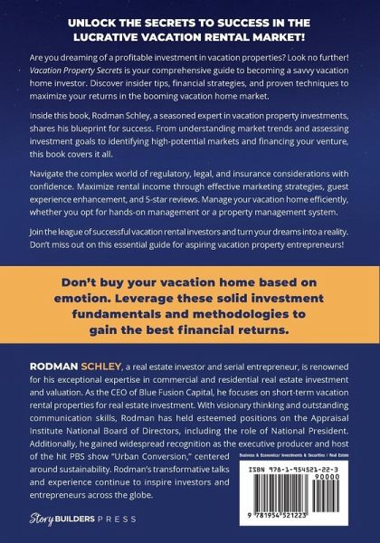 Unlock the Secrets to Success in the Lucrative Vacation Rental Market! Are you dreaming of a profitable investment in vacation properties? Look no further! Vacation Rental Secrets is your comprehensive guide to becoming a savvy vacation rental investor. Discover insider tips, financial strategies, and proven techniques to maximize your returns in the booming vacation home market. ¿¿Inside this book, Rodman Schley, a seasoned expert in vacation property investments, shares his blueprint for success. From understanding market trends and assessing investment goals to identifying high-potential markets and financing your venture, this book covers it all. Navigate the complex world of regulatory, legal, and insurance considerations with confidence. Maximize rental income through effective marketing strategies, guest experience enhancement, and 5-star reviews. Manage your vacation home efficiently, whether you opt for hands-on management or a property management system. Join the league of successful vacation rental investors and turn your dreams into a reality. Don't miss out on this essential guide for aspiring vacation property entrepreneurs!