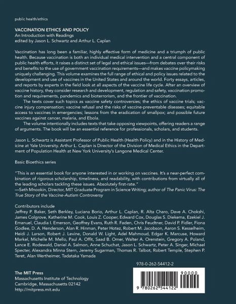 A comprehensive overview of important and contested issues in vaccination ethics and policy by experts from history, science, policy, law, and ethics. Vaccination has long been a familiar, highly effective form of medicine and a triumph of public health. Because vaccination is both an individual medical intervention and a central component of public health efforts, it raises a distinct set of legal and ethical issues—from debates over their risks and benefits to the use of government vaccination requirements—and makes vaccine policymaking uniquely challenging. This volume examines the full range of ethical and policy issues related to the development and use of vaccines in the United States and around the world. Forty essays, articles, and reports by experts in the field look at all aspects of the vaccine life cycle. After an overview of vaccine history, they consider research and development, regulation and safety, vaccination promotion and requirements, pandemics and bioterrorism, and the frontier of vaccination. The texts cover such topics as vaccine safety controversies; the ethics of vaccine trials; vaccine injury compensation; vaccine refusal and the risks of vaccine-preventable diseases; equitable access to vaccines in emergencies; lessons from the eradication of smallpox; and possible future vaccines against cancer, malaria, and Ebola. The volume intentionally includes texts that take opposing viewpoints, offering readers a range of arguments. The book will be an essential reference for professionals, scholars, and students. Contributors Jeffrey P. Baker, Seth Berkley, Luciana Borio, Arthur L. Caplan, R. Alta Charo, Dave A. Chokshi, James Colgrove, Katherine M. Cook, Louis Z. Cooper, Edward Cox, Douglas S. Diekema, Ezekiel J. Emanuel, Claudia I. Emerson, Geoffrey Evans, Ruth R. Faden, Chris Feudtner, David P. Fidler, Fiona Godlee, D. A. Henderson, Alan R. Hinman, Peter Hotez, Robert M. Jacobson, Aaron S. Kesselheim, Heidi J. Larson, Robert J. Levine, Donald W. Light, Adel Mahmoud, Edgar K. Marcuse, Howard Markel, Michelle M. Mello, Paul A. Offit, Saad B. Omer, Walter A. Orenstein, Gregory A. Poland, Lance E. Rodewald, Daniel A. Salmon, Anne Schuchat, Jason L. Schwartz, Peter A. Singer, Michael Specter, Alexandra Minna Stern, Jeremy Sugarman, Thomas R. Talbot, Robert Temple, Stephen P. Teret, Alan Wertheimer, Tadataka Yamada