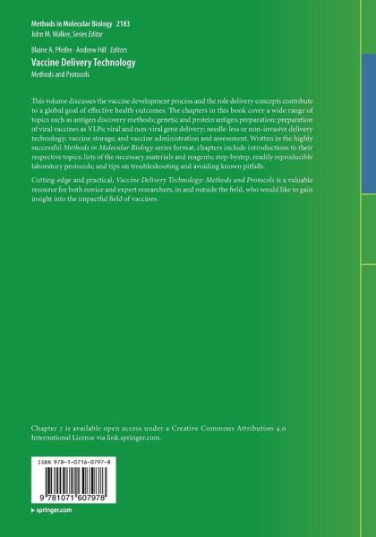 Vaccine Delivery and Immune Response Basics.- Isolating Pathogen-Specific Human Monoclonal Antibodies (hmAbs) using Bacterial Whole Cells as Molecular Probes.- Use of Chlamydial Elementary Bodies as probes to Isolate Pathogen-Specific Human Monoclonal Antibodies.- Computational Antigen Discovery for Eukaryotic Pathogens using Vacceed.- Antigen Discovery in Bacterial Pan-Proteomes.- Alphavirus-Based Antigen Preparation.- Production of Chimeric Hepatitis B Virus Surface Antigens in Mammalian Cells.- Bioreactor-Based Antigen Production Process using the Baculovirus Expression Vector System.- High-Throughput Process Development for the Chromatographic Purification of Viral Antigens.- Production of Zika Virus Virus-Like Particles.- Biosynthesis of Glycoconjugate Virus-Like Particles (VLPs).- Up- and Downstream Processes for Viral Nanoplaxes as Vaccines.- Whole-Cell Vaccine Preparation: Options and Perspectives.- O-AntigenExtraction, Purification, and Chemical Conjugation to a Carrier Protein.- Oligosaccharide Antigen Conjugation to Carrier Proteins to Formulate Glycoconjugate Vaccines.- Exploitation of Capsule Polymerases for the Enzymatic Synthesis of the Polysaccharide Antigens used in Glycoconjugate Vaccines.- Attenuation Methods for Live Vaccines.- Surface Modification of Adenovirus Vector to Improve Immunogenicity and Tropism.- Production of Baculovirus and Stem Cells for Baculovirus-Mediated Gene Transfer into Human Mesenchymal Stem Cells.- Lipofection-Based Delivery of DNA Vaccines.- Flavivirus DNA Vaccine Design and Adjuvant Selection.- Vaccine Delivery with a Detoxified Bacterial Toxin.- Needle-Less or Non-Invasive Delivery Technology.- Lactic Acid Bacteria as Delivery Vehicle for Therapeutics Applications.- A Hybrid Biological-Biomaterial Vector for Antigen Delivery.- Liposomal Dual Delivery of Both Polysaccharide and Protein Antigens.- Thin-Film Freeze-Drying is a Viable Method to Convert Vaccines Containing Aluminum Salts from Liquid to Dry Powder.- The Application of Cryogenic Transmission Electron Microscopy for Evaluation of Vaccine Delivery Carriers.- Methods to Evaluate Immune Cell Recruitment and the Cellular Uptake and Distribution of Antigen following Intramuscular Administration of Vaccine to Mice.- The Quantification of Antigen-Specific T Cells by IFN-Gamma ELISpot.- The Measurement of Antigen-Specific IgG Titers by Direct ELISA.- Method to Evaluate In Vivo CD8+ T Cell Cytotoxicity in a Murine Model.- Testing Anti-Pneumococcal Antibody Function using Bacteria and Primary Neutrophils.- Viral Infectivity Qunatification and Neutralization Assays using Laser Force Cytology.