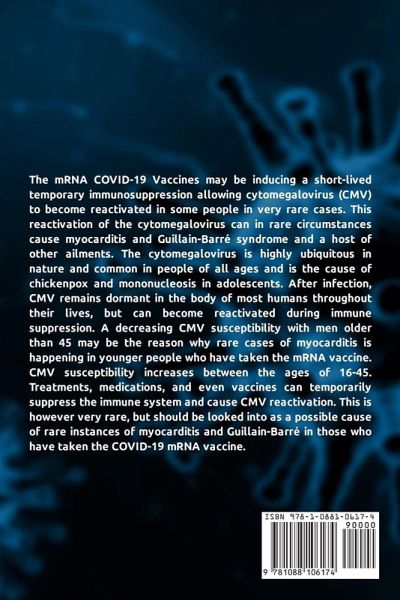 The mRNA COVID-19 Vaccines may be inducing a short-lived temporary immunosuppression allowing cytomegalovirus (CMV) to become reactivated in some people in very rare cases. This reactivation of the cytomegalovirus can in rare circumstances cause myocarditis and Guillain-Barré syndrome and a host of other ailments. The cytomegalovirus is highly ubiquitous in nature and common in people of all ages and is the cause of chickenpox and mononucleosis in adolescents. After infection, CMV remains dormant in the body of most humans throughout their lives, but can become reactivated during immune suppression. A decreasing CMV susceptibility with men older than 45 may be the reason why rare cases of myocarditis is happening in younger people who have taken the mRNA vaccine. CMV susceptibility increases between the ages of 16-45. Treatments, medications, and even vaccines can temporarily suppress the immune system and cause CMV reactivation. This is however very rare, but should be looked into as a possible cause of rare instances of myocarditis and Guillain-Barré in those who have taken the COVID-19 mRNA vaccine.