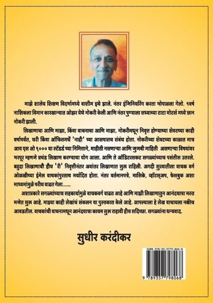 Vachnatun Anand Lekhmala "Mhais" As we venture out into the world, we come across a kaleidoscope of experiences, some that we may like and some that we may not. I always look at these in creative and positive manner. This improves my vigilance, my perspective towards life and always kindles a happy attitude. As a debutant author, I have compiled some such experiences spanning real-life personal events to thought-provoking social issues dabbled with my imaginations in this book. Some of the topics are - Crossing the traffic road with the help of buffalo, Dry day for mobile, One goes for the exam and his hall ticket has different photograph, Taking help of God to improve traffic discipline, Discover yet to be known uses of helmet, Chat with mosquitoes, New bargaining technique for scooter, My journey from Haridwar to Rishikesh in car with revolving red light and armed security etc. Such 21 interesting articles are included in this book. Relevant pictures and good thoughts are also interspersed in between. I hope you all enjoy this menu of diverse short stories and the book "Mhais" as a whole. Your feedback is most welcome